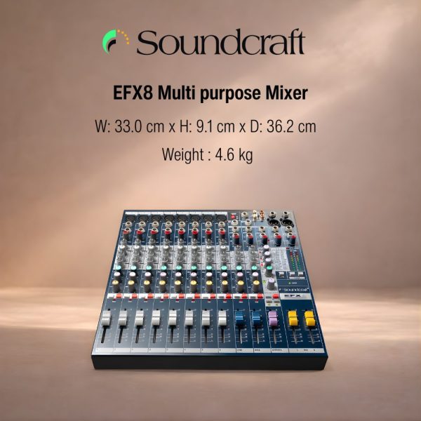 The Soundcraft EFX™ Series combines all the features of the popular Soundcraft EPM™ mixer with a built-in 24-bit, digital Lexicon® effects processor, expanding the Soundcraft low-cost, multipurpose compact range.
