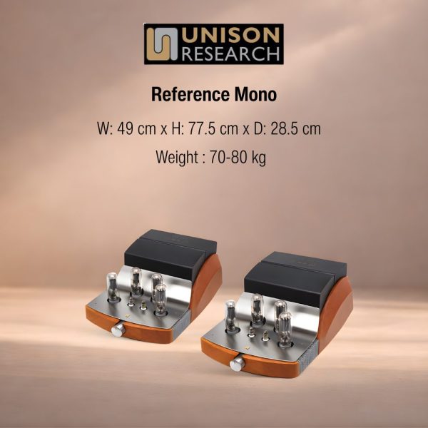 nison Research noticed there was a high demand from customers requesting a tube amplifier capable of output power that exceeded their earlier models. As a response, the design team at Unison Research crafted the Reference Power mono-block amplifiers. This amplifier is the culmination of Unison Research’s years of experience of crafting high-calibre valve designs.