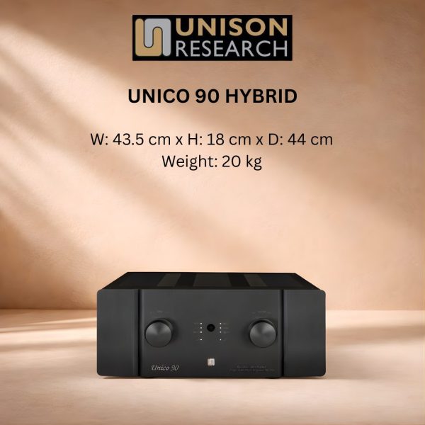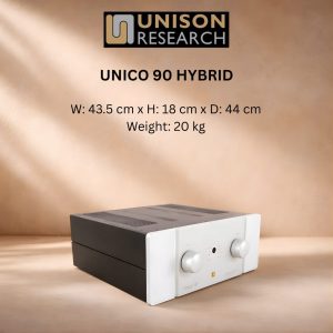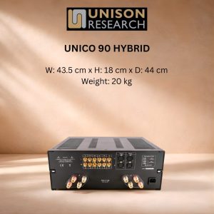 The Unison Research Unico 90 is a highly regarded Italian-made hybrid integrated amplifier (100W/ch into 8ohm,160W/ch into 4ohm) that combines ECC83/ECC81 tube pre-amplification with MOSFET power stages. It is praised for delivering a powerful, dynamic sound with a “tubey,” holographic midrange alongside excellent speed and control. The dual-mono design (20kg) features zero global feedback.