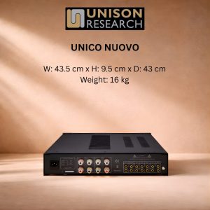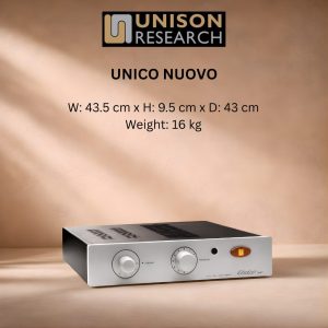 The Unison Research Unico Nuovo is a highly regarded hybrid integrated amplifier.marrying a tube input stage (12AX7/ECC83) with MOSFET power stages. It delivers roughly 95W RMS into 8 ohms, producing a full-bodied, warm, and articulate sound with strong, musical bass, notable for its refined, “valve-like” midrange and excellent, high-end, build quality.It utilizes a Pure Class A parallel valve stage for input and a Dynamic Class A MOSFET output, providing 95W RMS per channel. Its “ionic bias” system ensures stable performance over time.